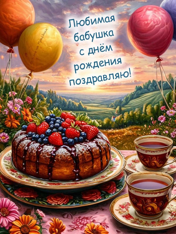 Открытка на др бабушке рисунок с надписью "Любимая бабушка с днём рождения поздравляю!"